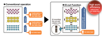 «ID cut» es una función para cortar de manera automática los datos incluidos en un ID, simplemente necesita que la impresora disponible de Mimaki* escanee la salida de marca del registro del ID. La transmisión de datos del PC se completa con una sola operación, que economiza drásticamente el trabajo de impresión y corte y aumenta la eficiencia del trabajo.