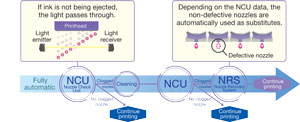 tinta Ubicado en el cabezal de impresión reduce la sedimentación de la tinta y proporciona un chorro de tinta estable. Además, el sistema elimina las burbujas de aire, que tapan la boquilla. Por lo tanto, se reduce la frecuencia de limpieza de la boquilla, lo que resulta en una salida de impresión más rentable y estable.