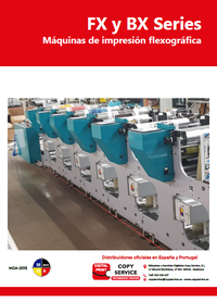 Las impresoras flexográficas MGA de la serie FX, están controladas automáticamente por servomotores y en sus versiones estándar ofrecen anchos de 340 o 420 mm.
